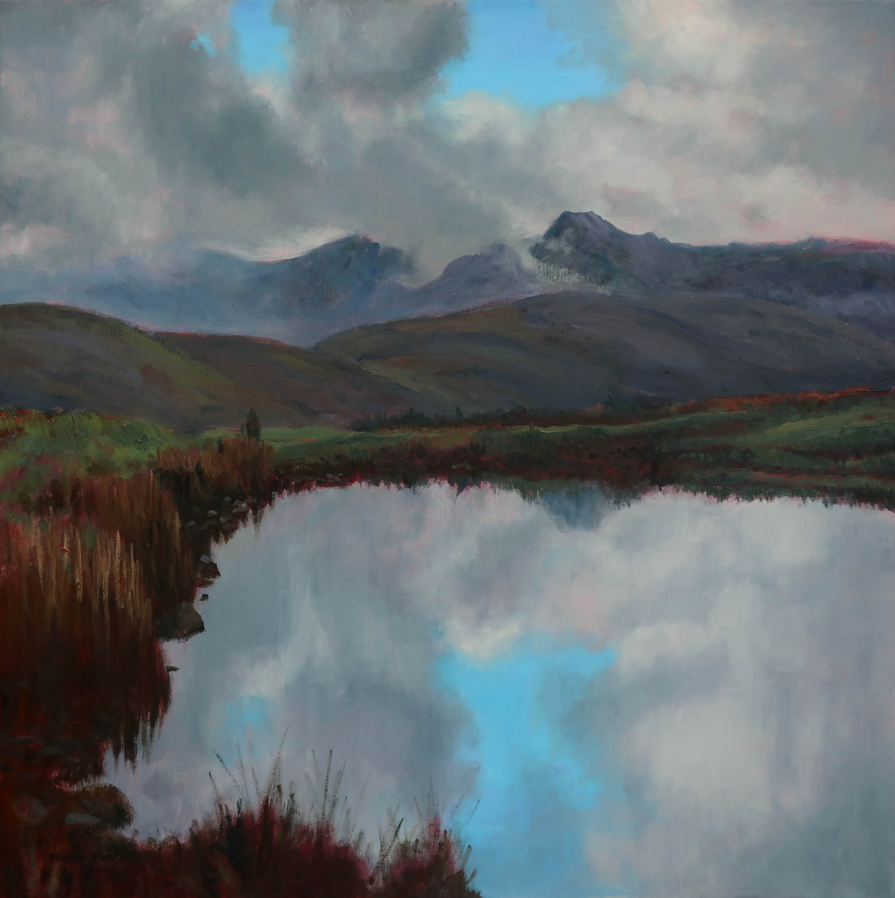 Langdale Pikes from Alcock Tarn, oil on canvas, 60x60cm